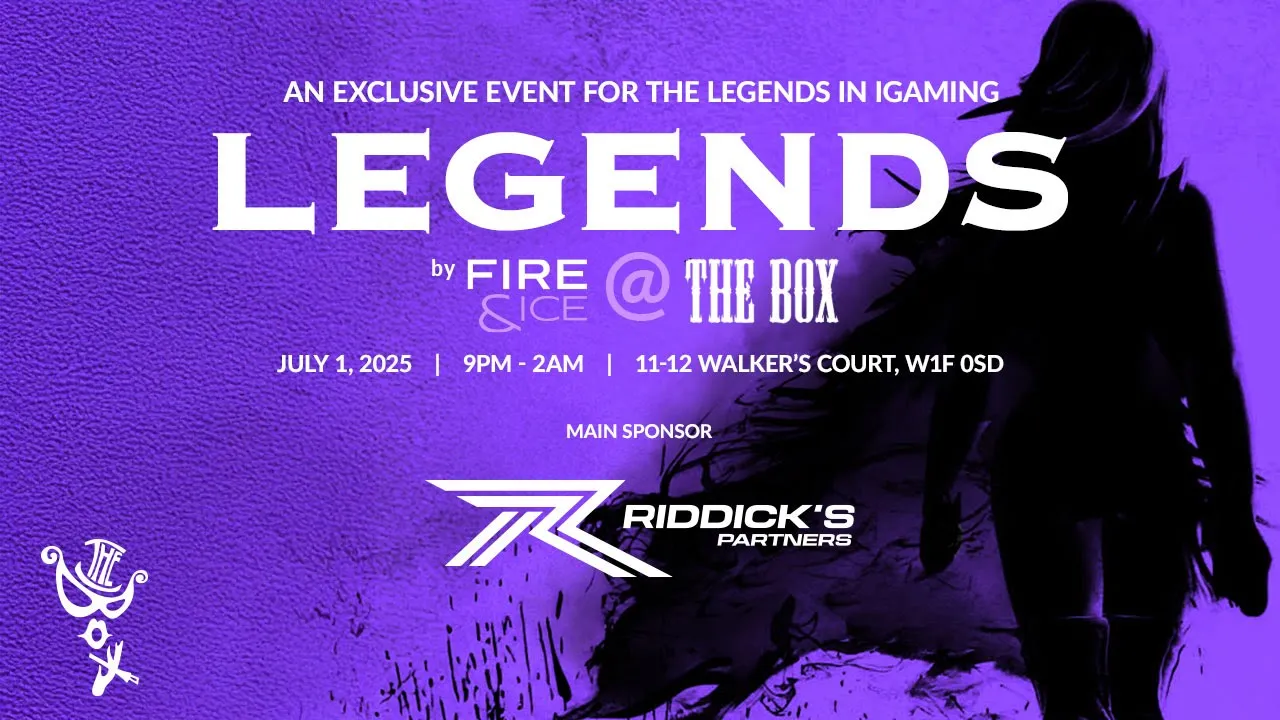 Оффлайн сайд-ивент Legends' by Fire & Ice запланирован на 1 июля 2025 года в The BOX Soho по адресу 11-12 Walker's Ct, London W1F 0SD. Lyceum Media выступает организатором мероприятия, которое пройдет в рамках iGB L!VE London 2025.